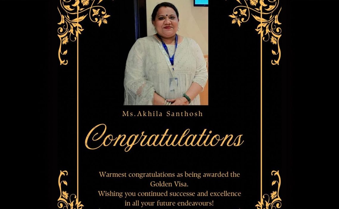 Congratulations to Ms. Akhila Santhosh on Receiving the Golden Visa for Literary Excellence