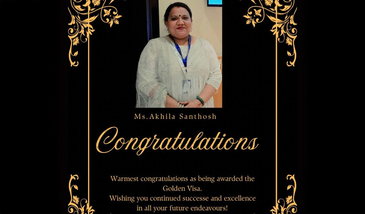 Congratulations to Ms. Akhila Santhosh on Receiving the Golden Visa for Literary Excellence
